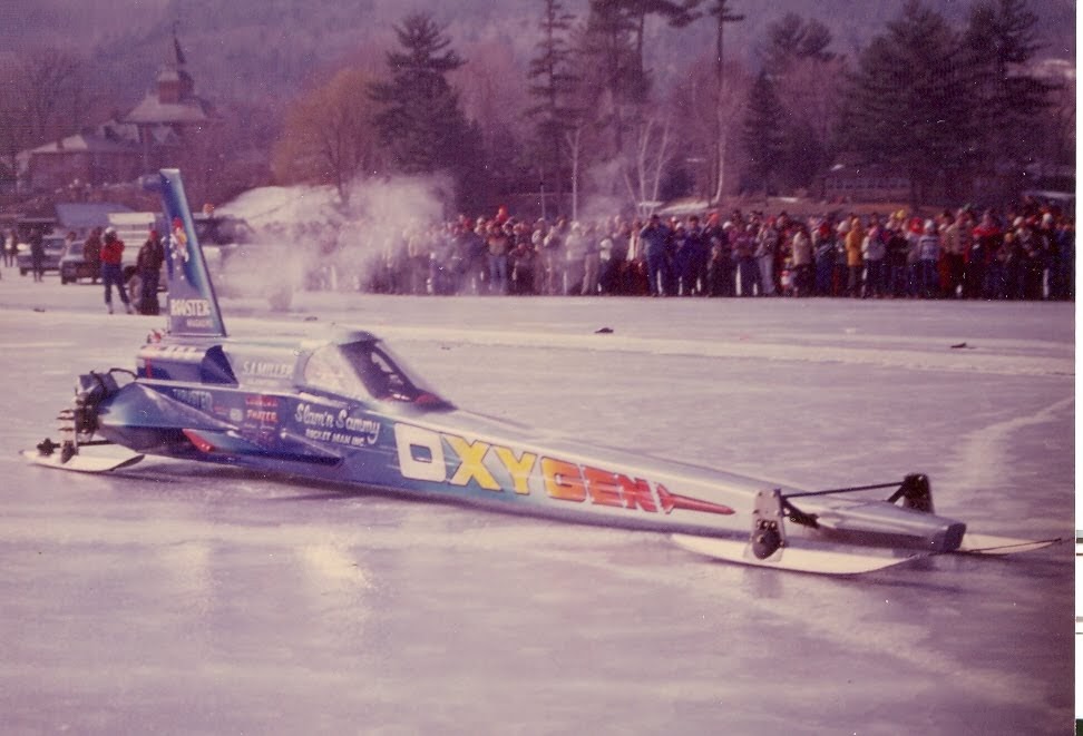 Slam'n Sammy Miller and Ron Vigneri's world record holding "Oxygen" rocket powered ice racer.
